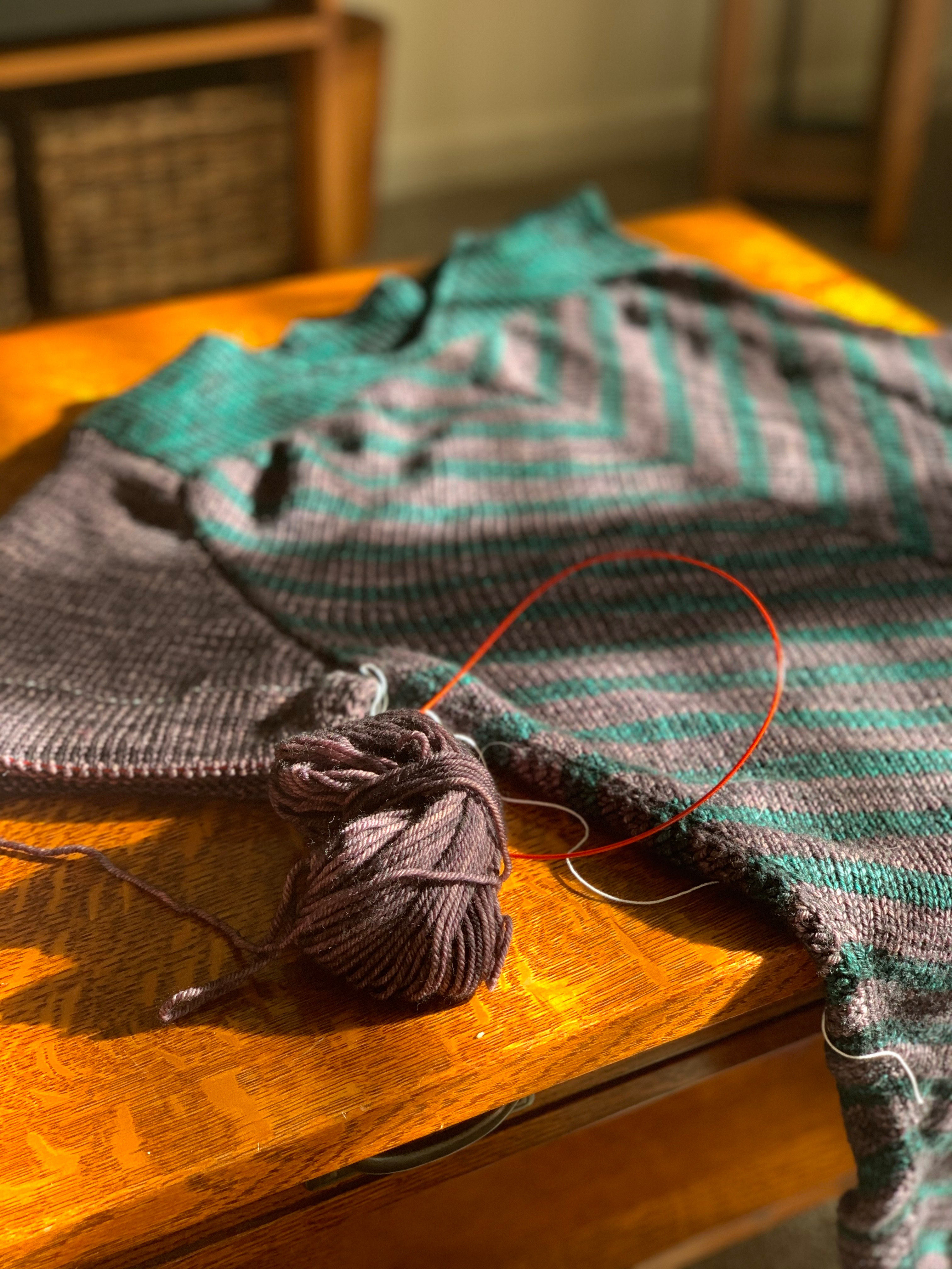 Yarn: Malabrigo Rios in “Pearl 10” and “Pines”