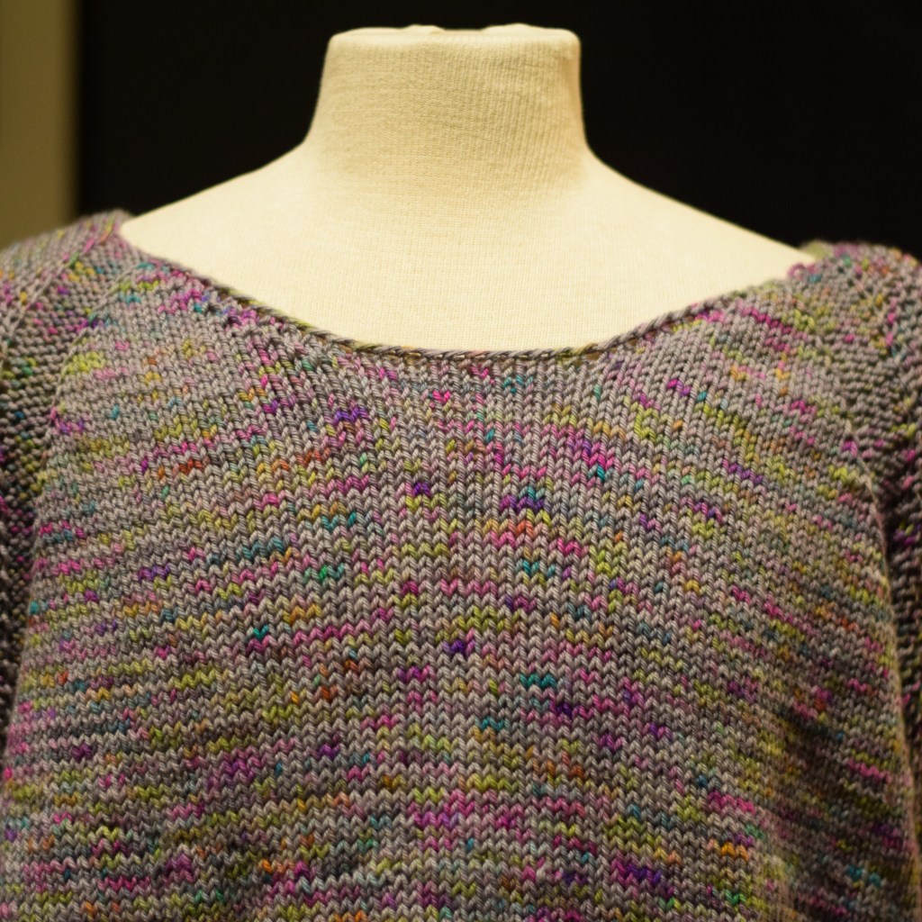 Cast on and almost done with the body of the Tectonic Sweater by Emily Greene in Leading Men Fiber Arts West End in “Heathers”