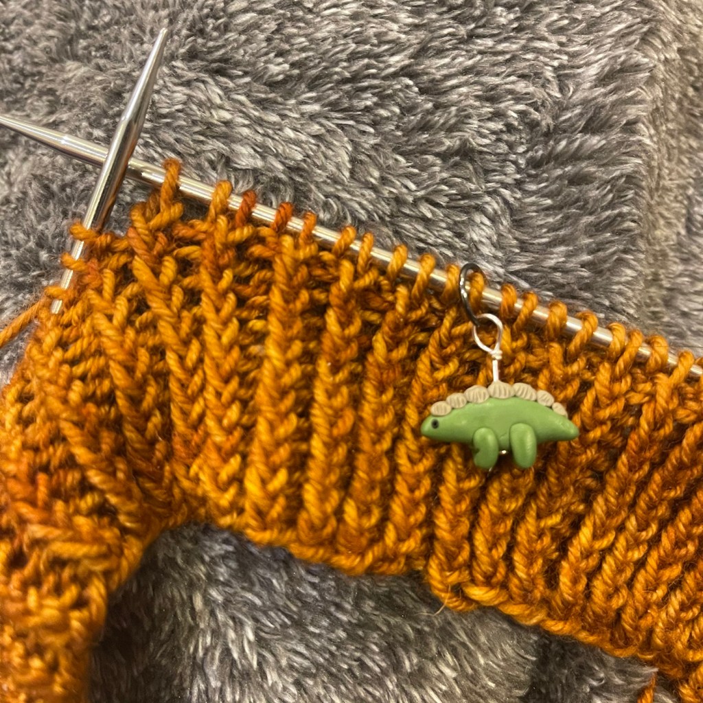 Some decent progress on the Wildcat Socks (Ravelry Link) by Ana Campos in LolaBean Yarn Co. Wax Bean in “The City So Nice They Named it Twice”